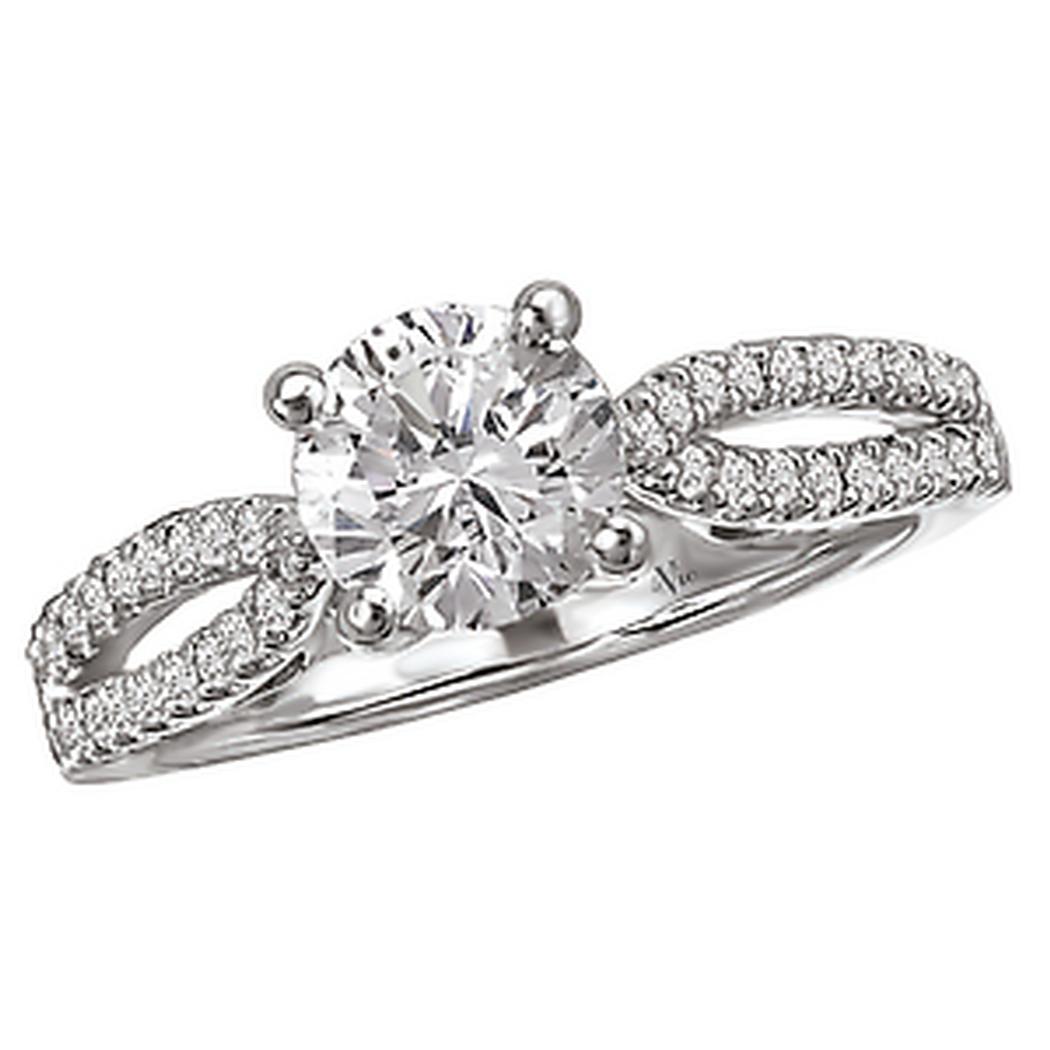 Split Shank Trellis Diamond Ring in 14kt White Gold. (D.1/4 carat total weight) This item is a SEMI-MOUNT and it comes with NO CENTER STONE as shown but it will accommodate a 6.5mm round center stone.