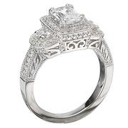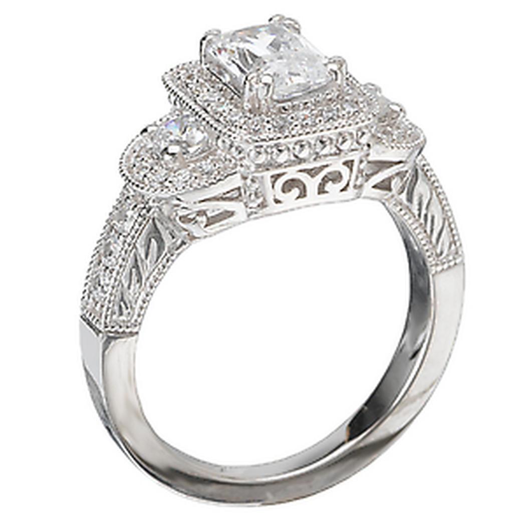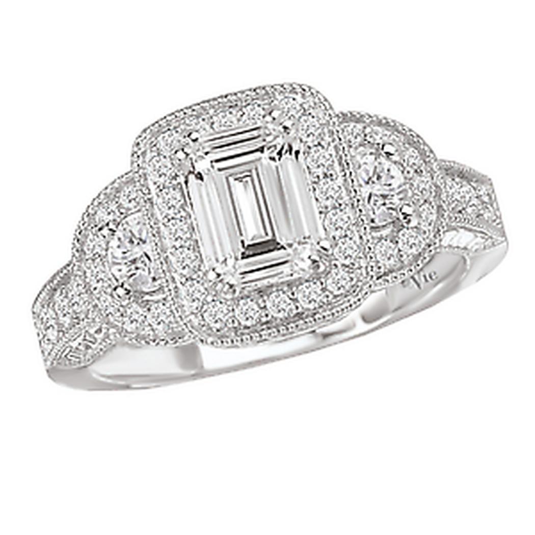 Diamond Engagement Ring in 14kt White Gold with Milgrain Detail. (D.1/2 carat total weight) This item is a SEMI-MOUNT and it comes with NO CENTER STONE as shown but it will accommodate a 7x5mm emerald center stone.