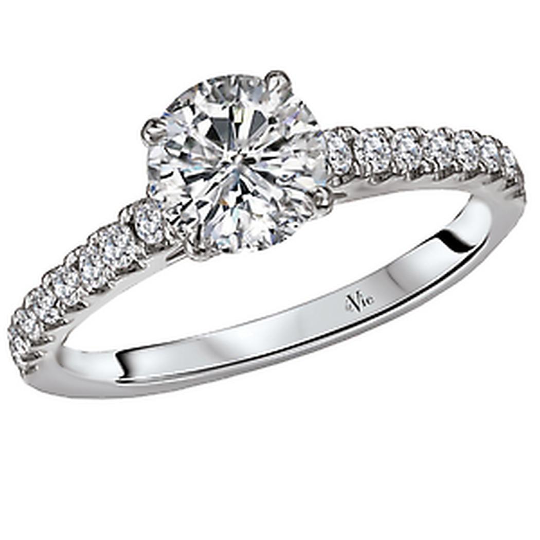 Classic Diamond Ring in 14kt White.(D 1/4 carat total weight) This item is a SEMI-MOUNT and it comes with NO CENTER STONE as shown but it will accommodate a 6.5mm round center stone.