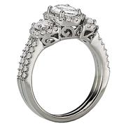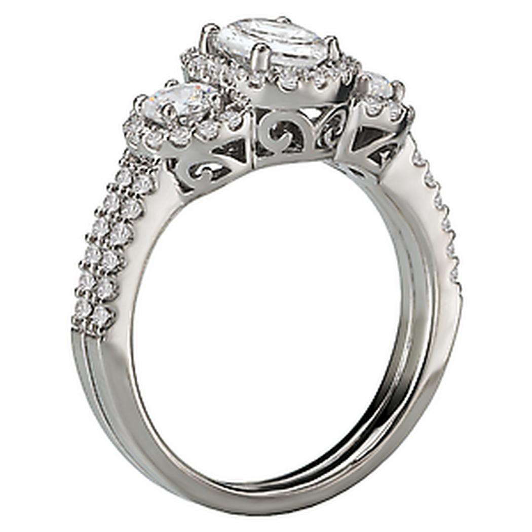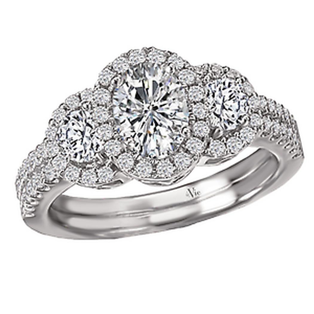 Triple Halo Diamond Ring in 14kt White Gold. (D 3/4 carat total weight) This item is a SEMI-MOUNT and it comes with NO CENTER STONE as shown but it will accommodate a 7x5mm oval center stone.