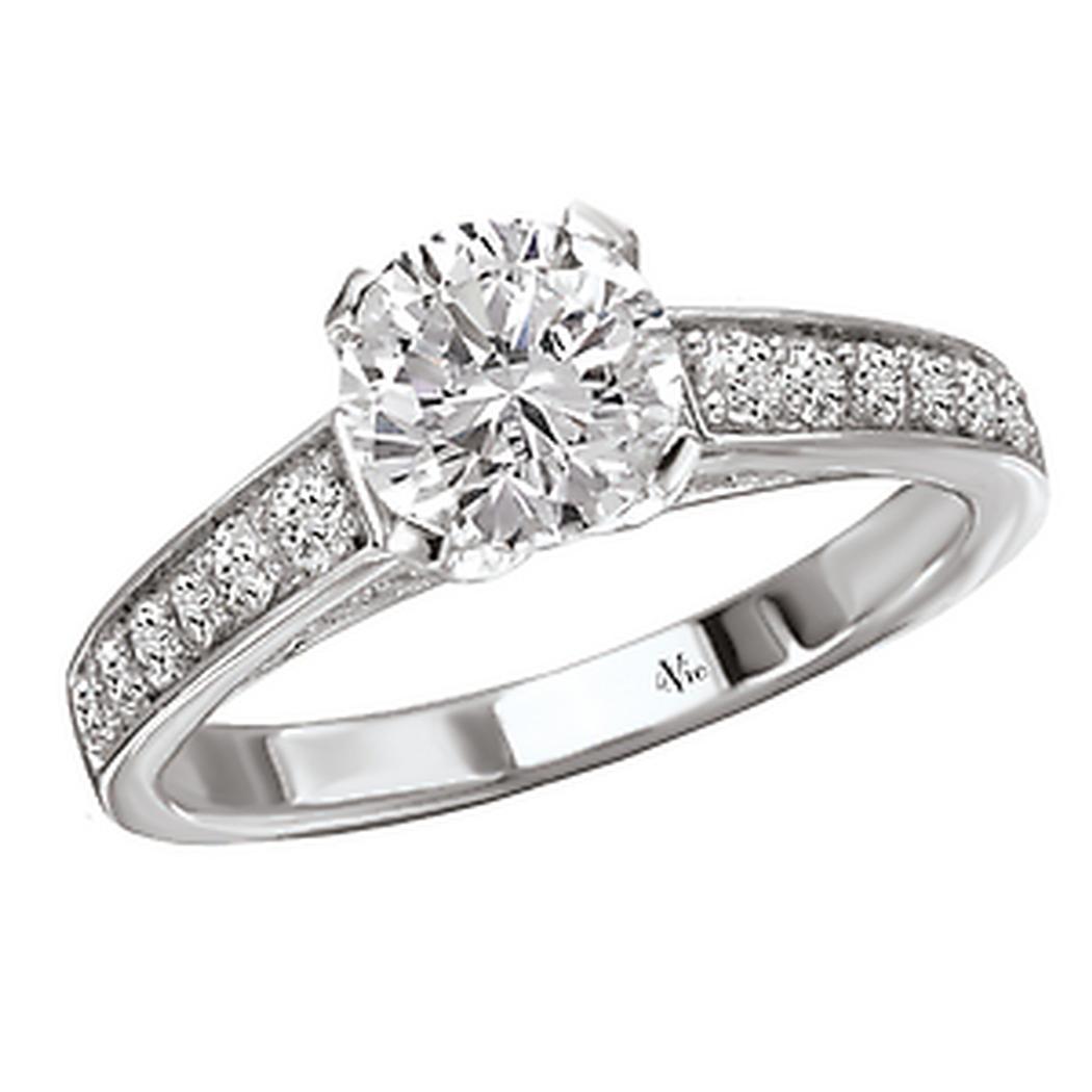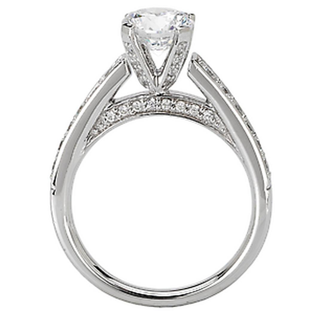 Diamond Engagement Ring in 14kt White Gold. (D. 1/2 carat total weight) This item is a SEMI-MOUNT and it comes with NO CENTER STONE as shown but it will accommodate a 6.5mm round center stone. Peg Head