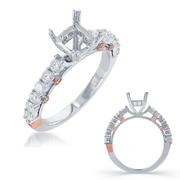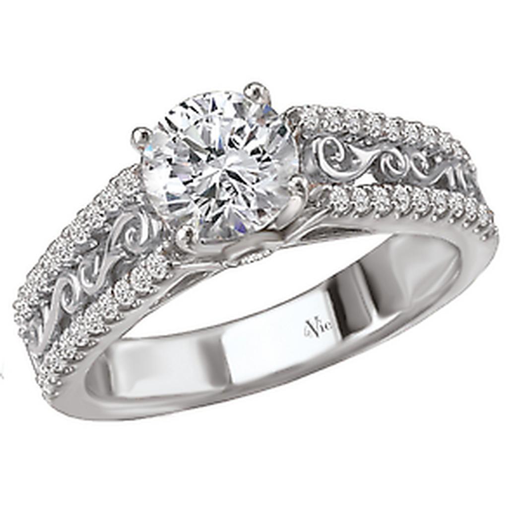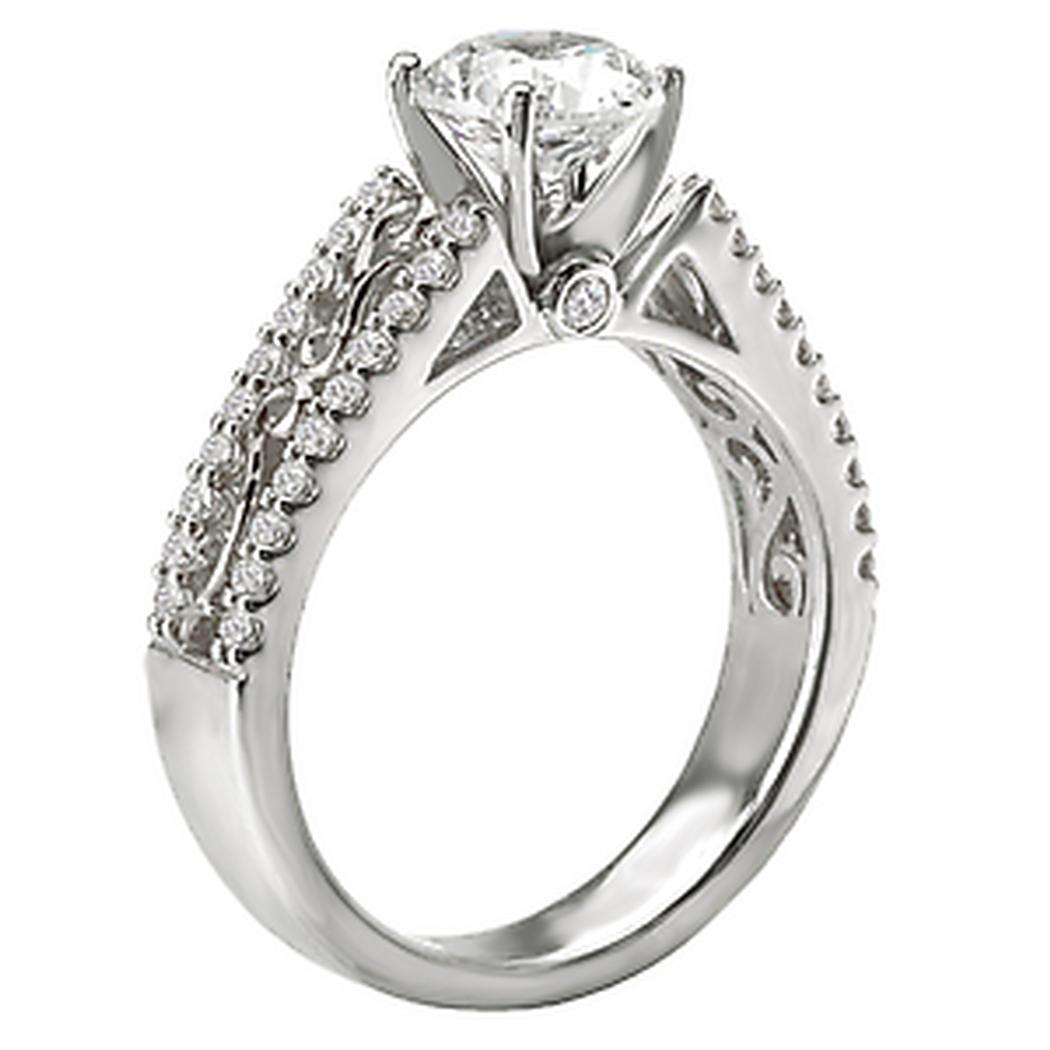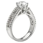 Diamond Ring in 14kt White Gold with Fancy Scroll Detail. (D 1/4 carat total weight)This item is a SEMI-MOUNT and it comes with NO CENTER STONE as shown but it will accommodate a 6.5mm round center stone.