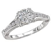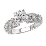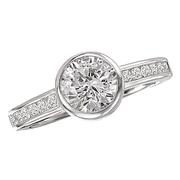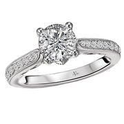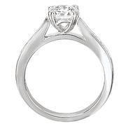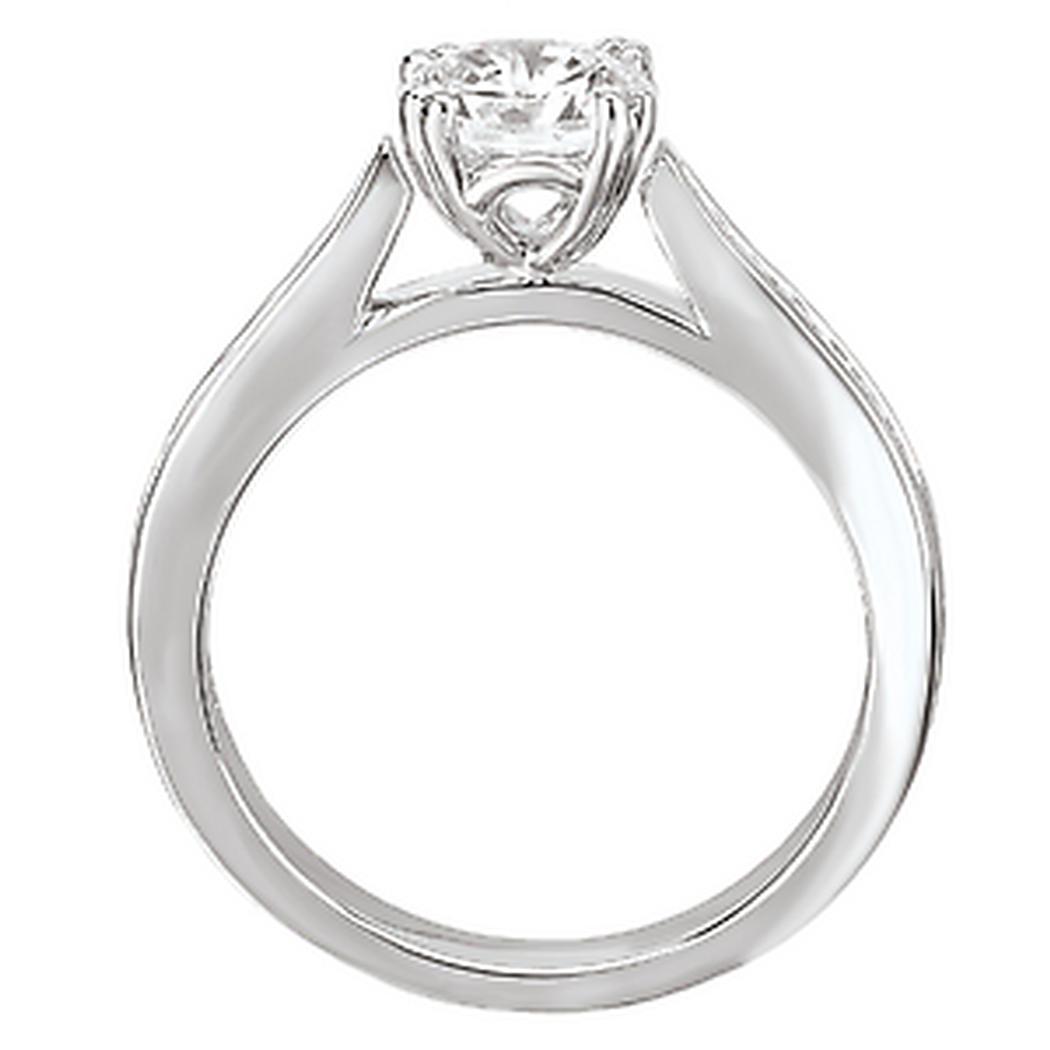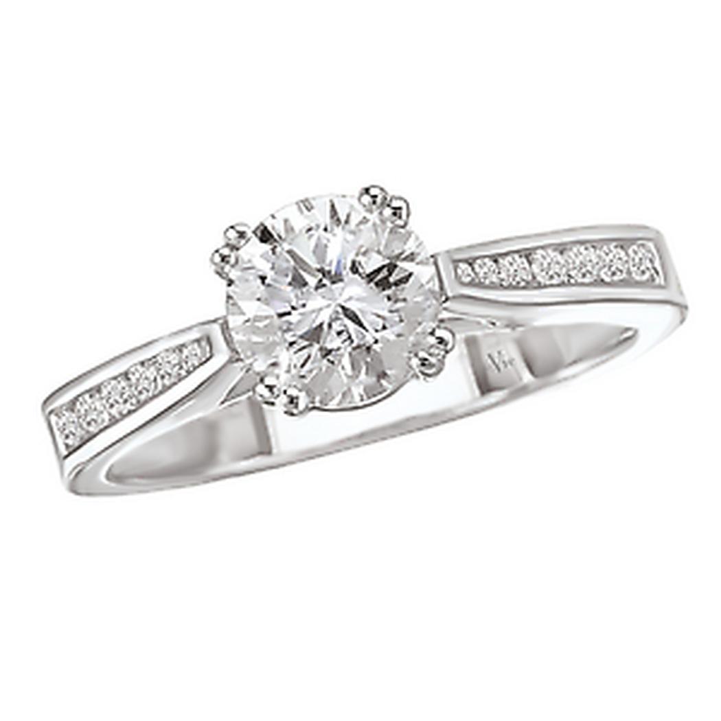 Graduated Round Diamond Channel Set Ring in 14kt White Gold. (D.1/6 carat total weight) This item is a SEMI-MOUNT and it comes with NO CENTER STONE as shown but it will accommodate a 6.5mm round center stone. Peg Head