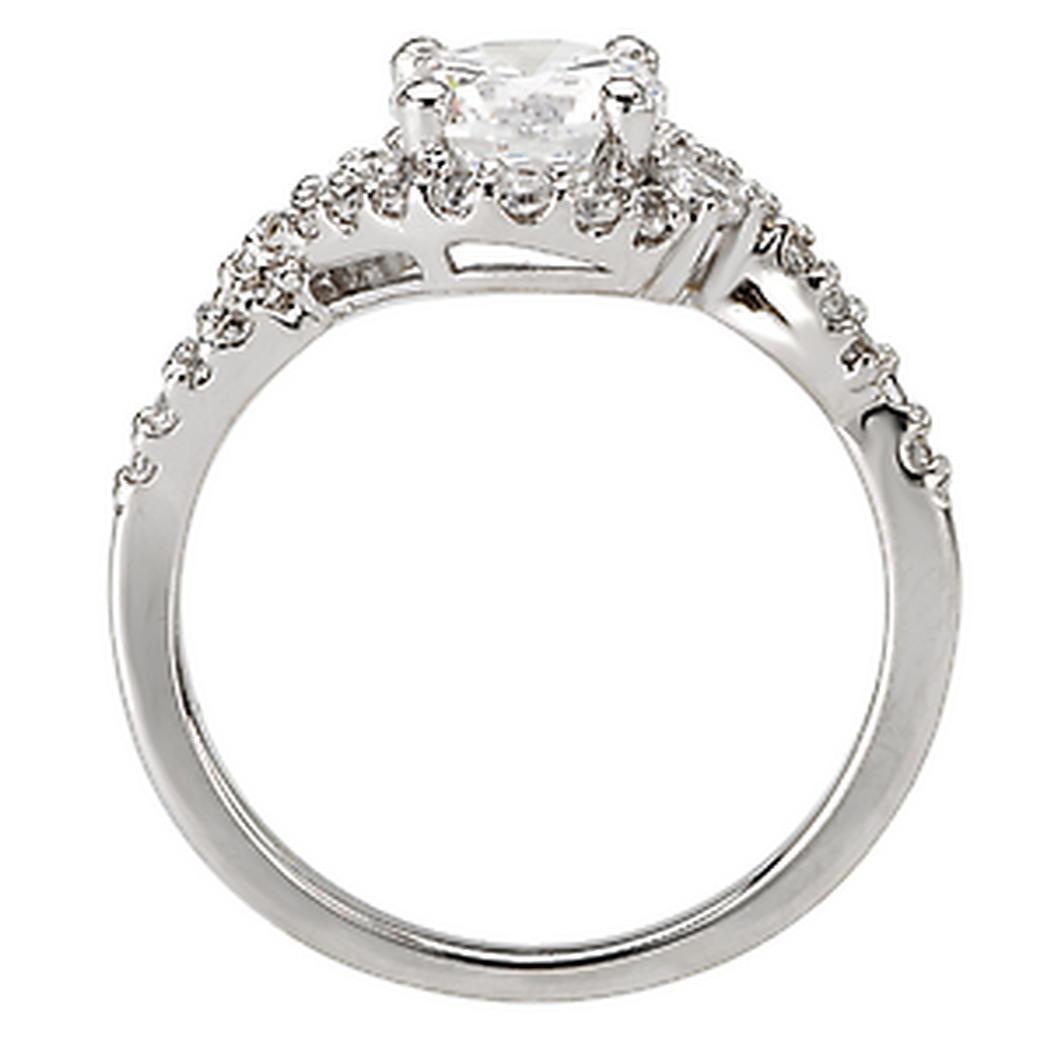 Diamond Halo Engagement Ring in 14kt White Gold. (D.1/3 carat total weight) This item is a SEMI-MOUNT and it comes with NO CENTER STONE as shown but it will accommodate a 6.5mm round center stone.
