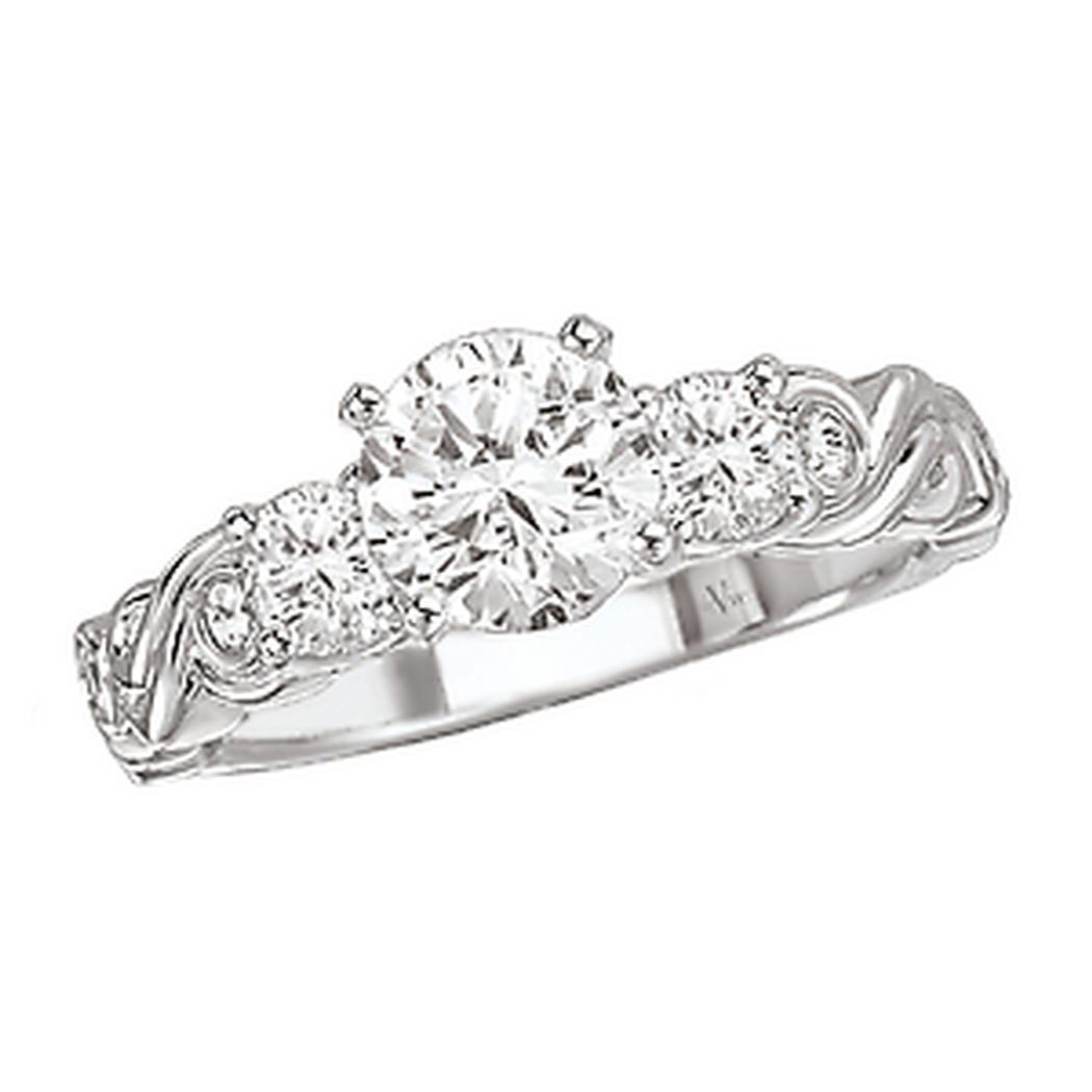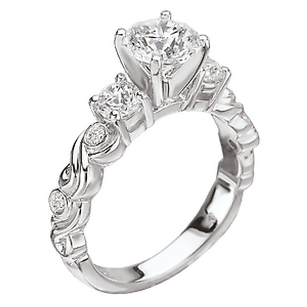 Swirl Designed Diamond Engagement Ring in 14kt White Gold. (D.1/2 carat total weight) This item is a SEMI-MOUNT and it comes with NO CENTER STONE as shown but it will accommodate a 6.5mm round center stone. Peg Head