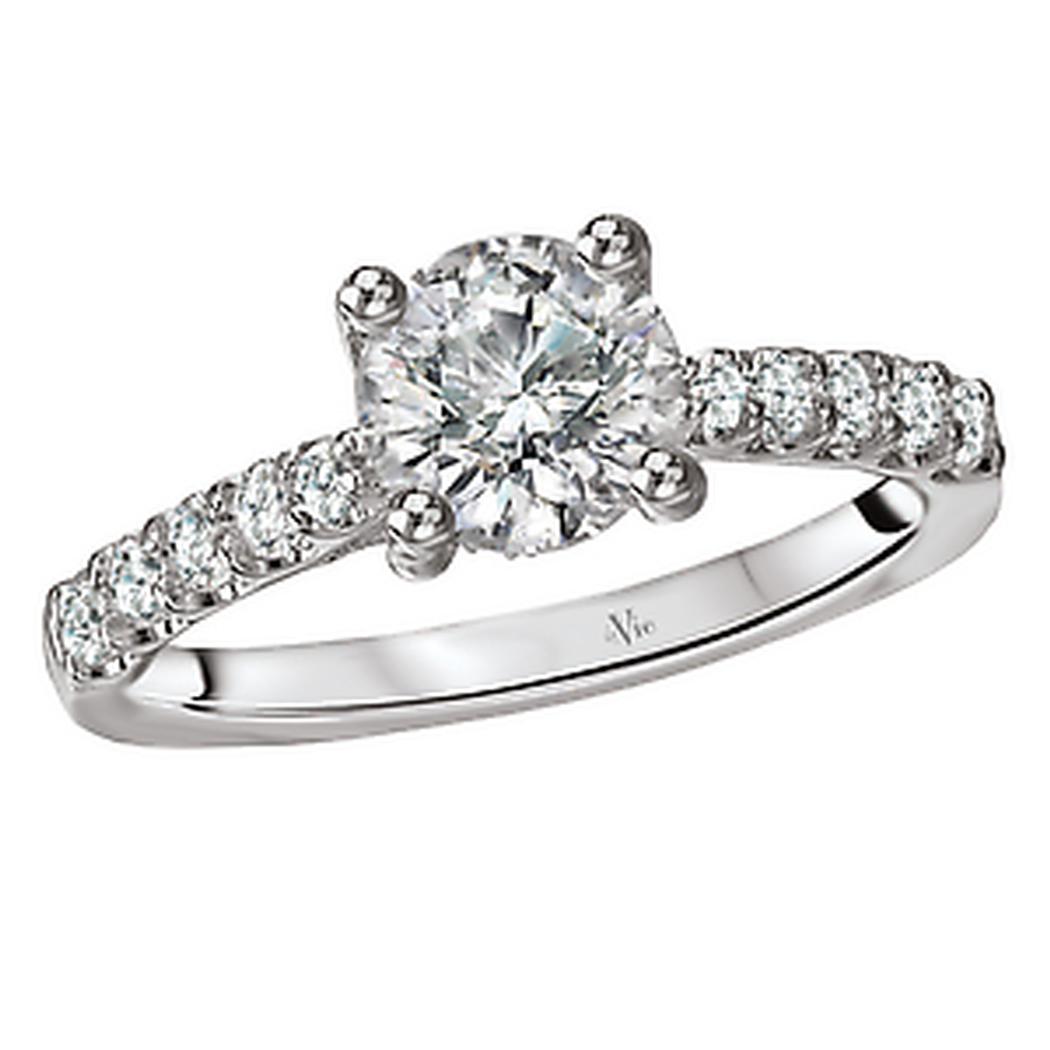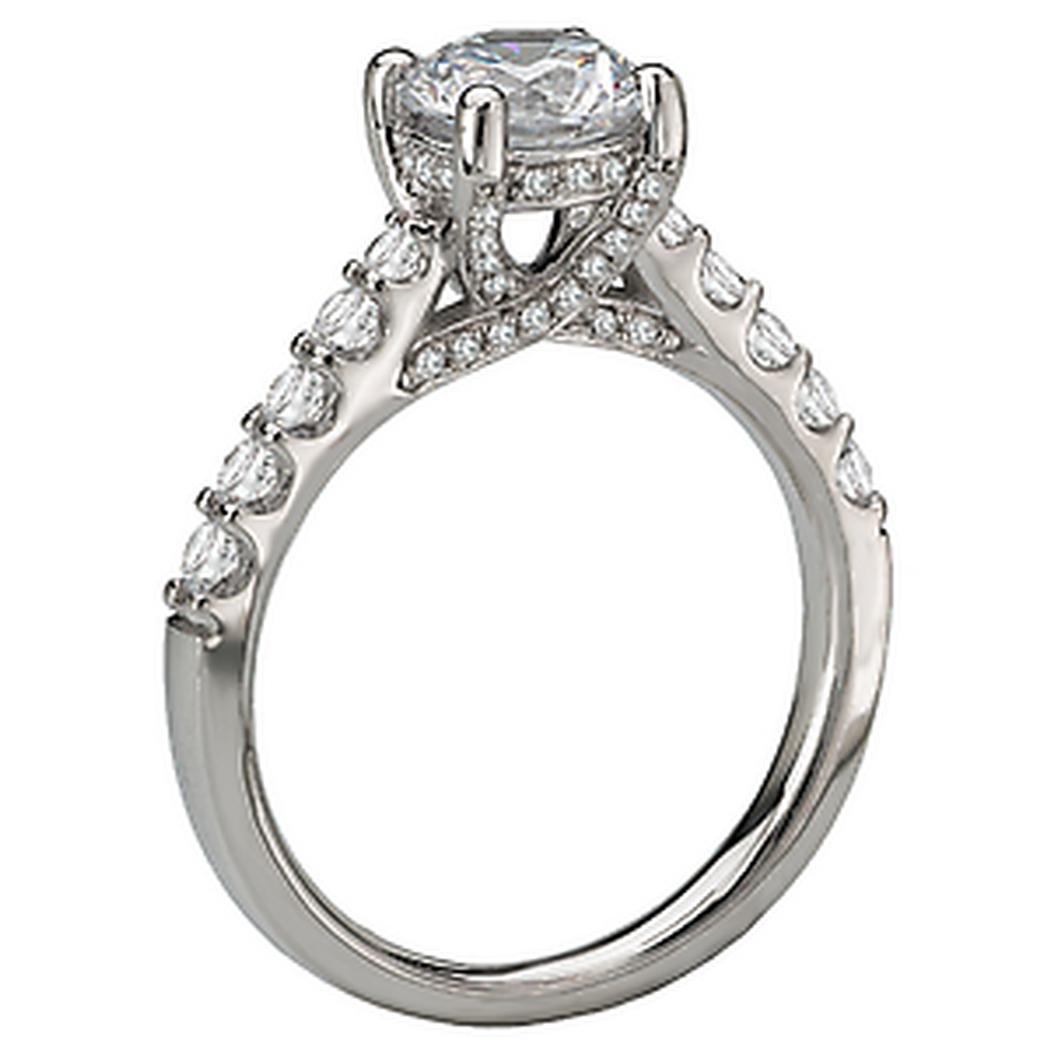 Trellis Design Diamond Ring in 14kt White Gold. (D 3/8 carat total weight) This item is a SEMI-MOUNT and it comes with NO CENTER STONE as shown but it will accommodate a 6.5mm round center stone.