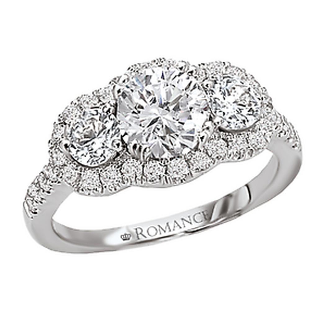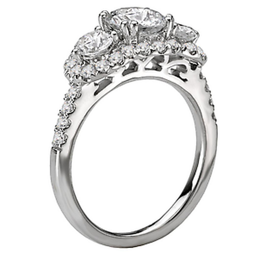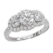 Triple Round Halo Diamond Ring in 18kt White Gold (D1.0 carat total weight). This item is a SEMI-MOUNT and it comes with NO CENTER STONE as shown but it will accommodate a 6.5mm round center stone.