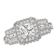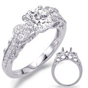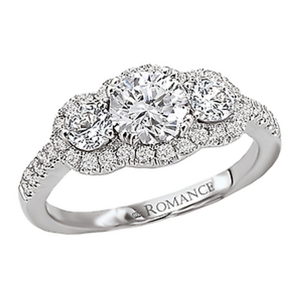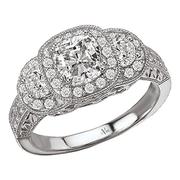 3-Stone Triple Halo Look Round Diamond Ring in 14kt White Gold. (D1.0 carat total weight includes D 3/8 carat round center)