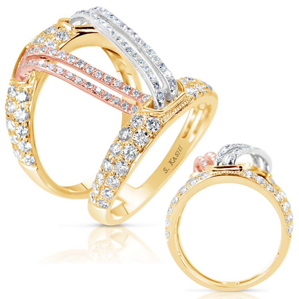 Yellow & Rose & White Fashion Ring. 1.55 cts. Stone Count: 115 stones