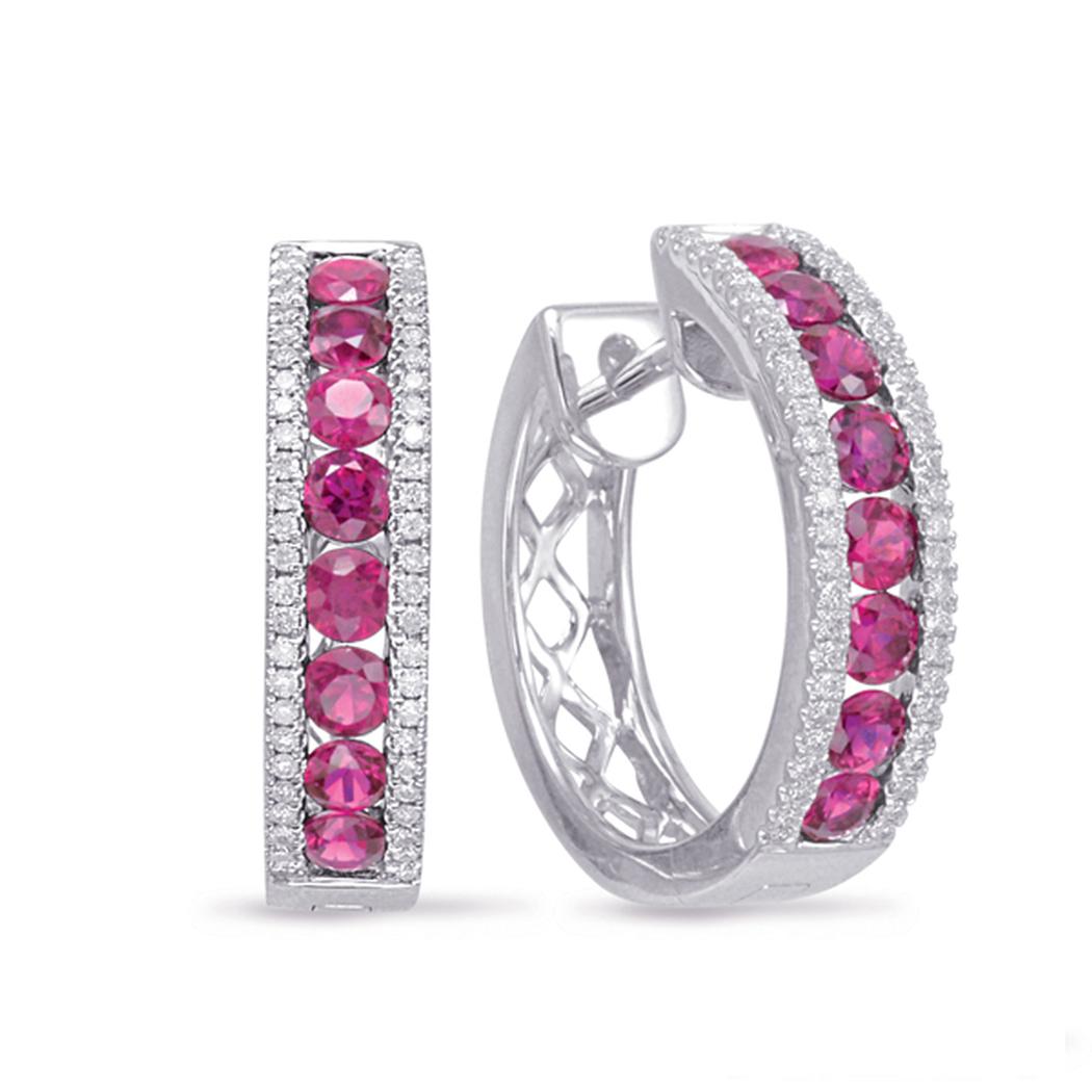 White Gold Ruby & Diamond Earring. 1.90 cts. Stone Count: 120 stones
