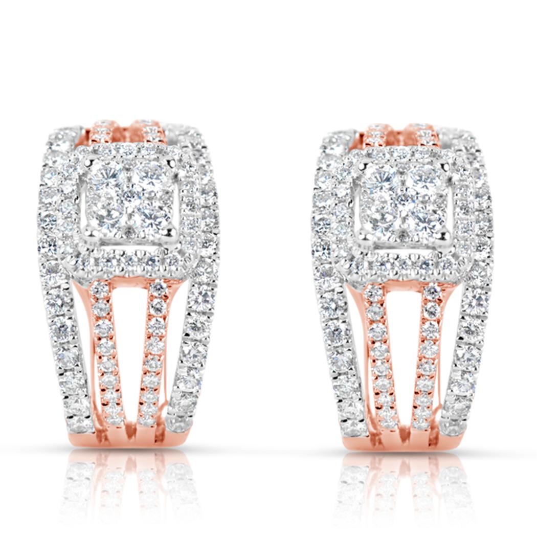 Rose & White Gold Diamond Earring. 1.30 cts. Stone Count: 182 stones