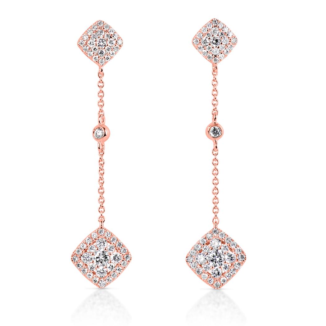 Rose Gold Diamond Earring. 0.73 cts. Stone Count: 110 stones