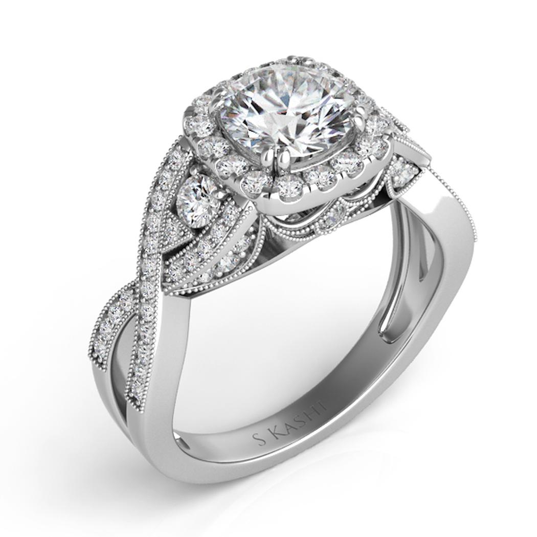 White Gold Halo Engagement Ring (0.57 cts.)