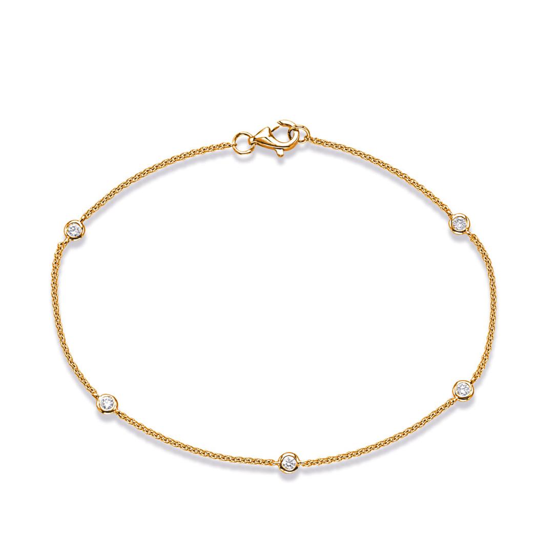 0.14 ctw. Diamond and Gold bracelet. This bracelet has 5 diamonds surrounding it with a bezel setting for each diamond.