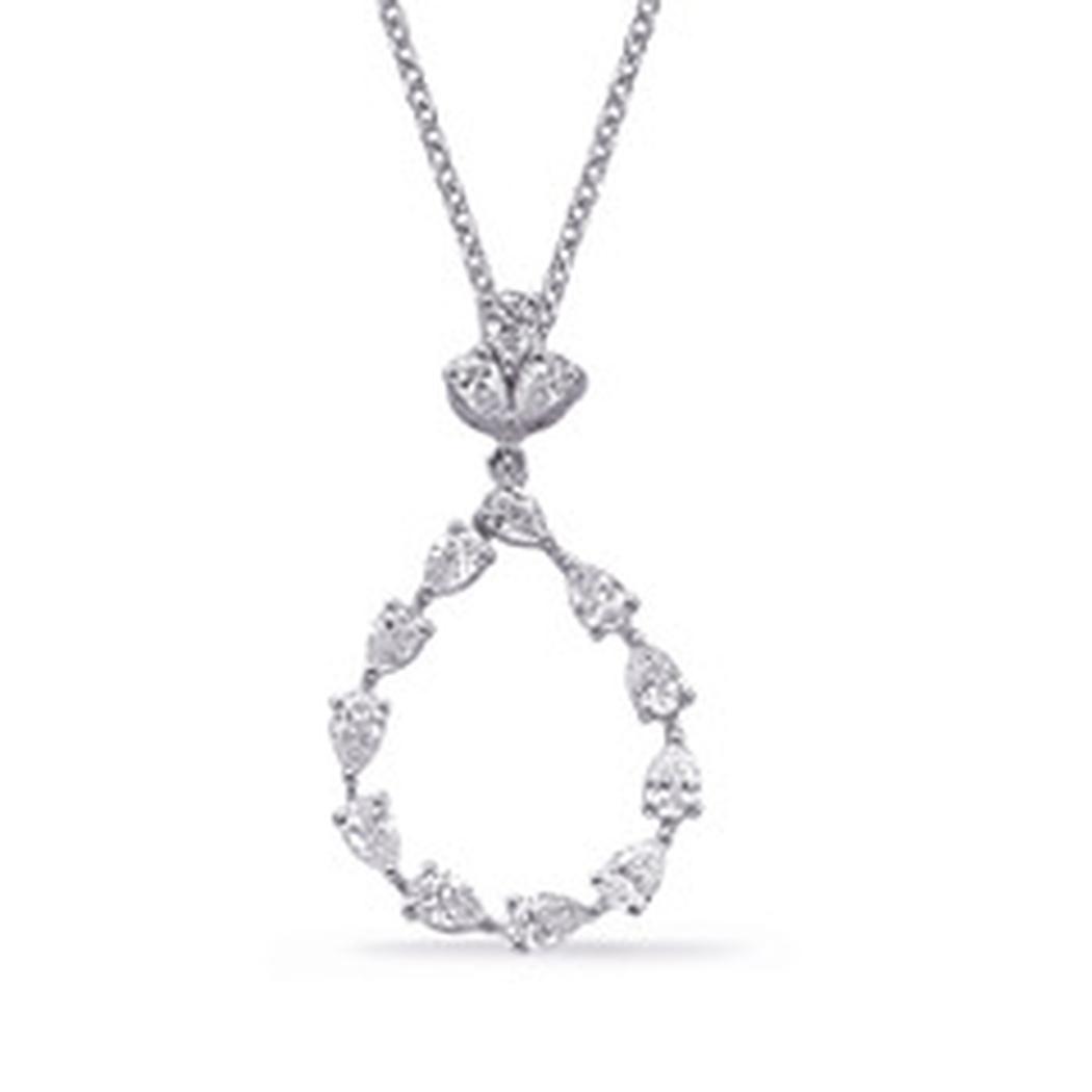 14KT White Gold Diamond Pear Shaped Pendant. with a Total Weight of 0.73ct. Total of 14 Stone,Prong setting.